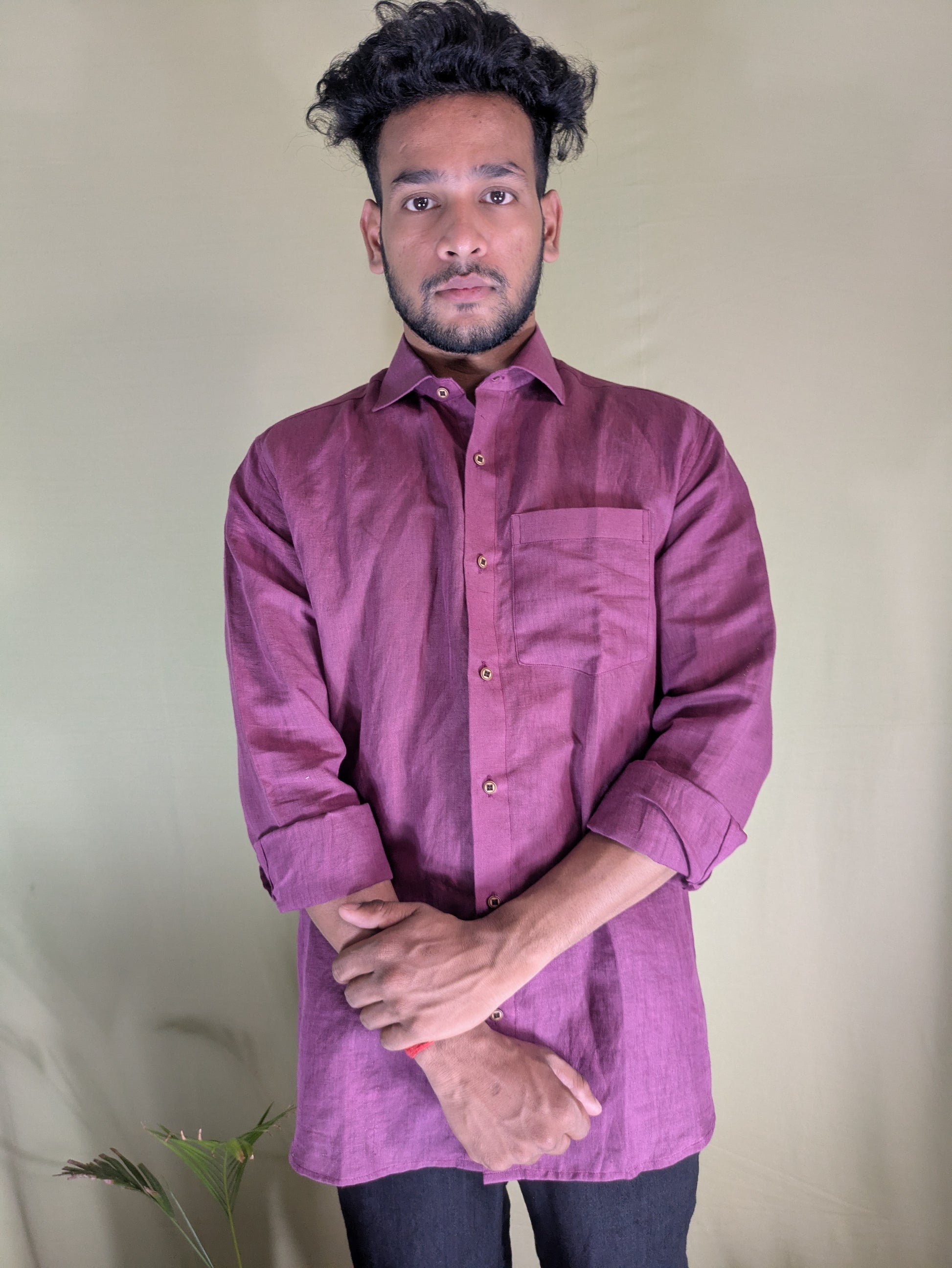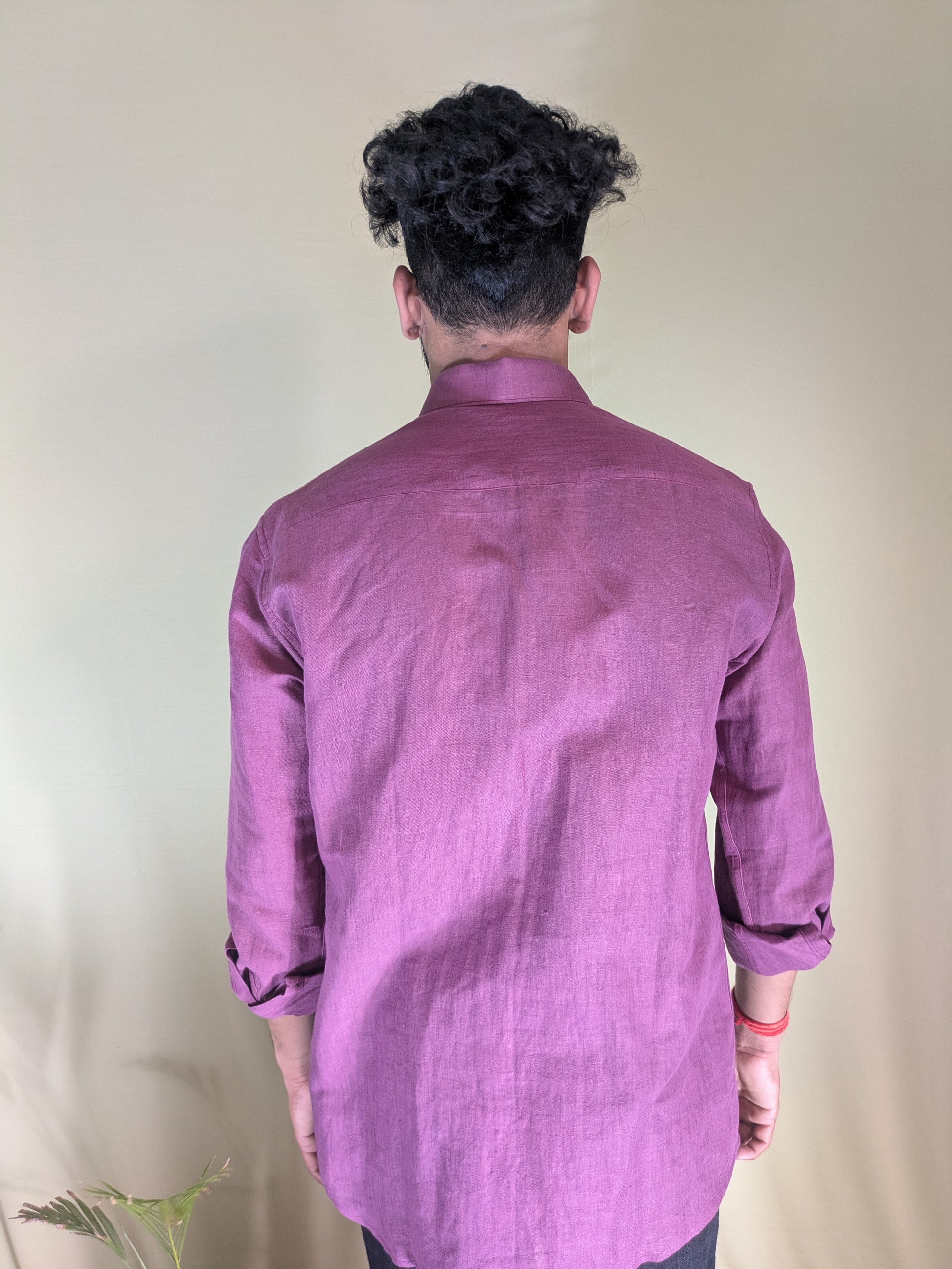 This Burgundy Pure Linen Shirt embodies depth and elegance — inspired by the grounded tones of Indian soil and festive warmth of the season.